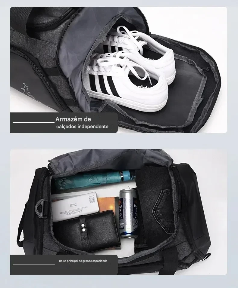 Especificações: Tipo: Bolsa Fitness Material do produto: nylon (tecido), poliéster (forro) Cor do produto: vermelho, azul escuro, preto, cinza (opcional) Tamanho do produto: 53 * 25 * 26 cm/20,87 * 9,84 * 10,24 polegadas